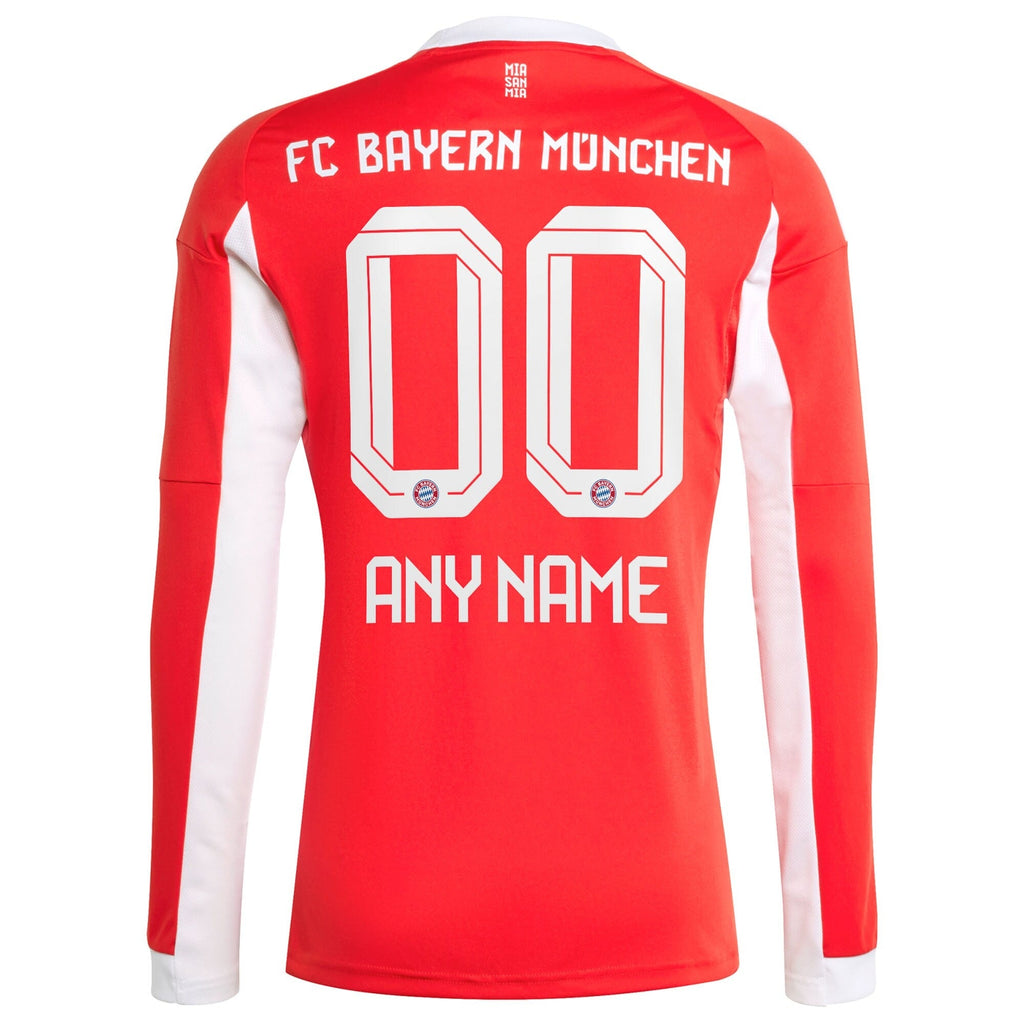 Show your unique Bayern Munich pride with the 2025/26 Home Long Sleeve Custom Soccer Shirt by in bold red.