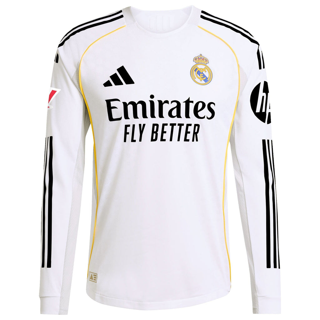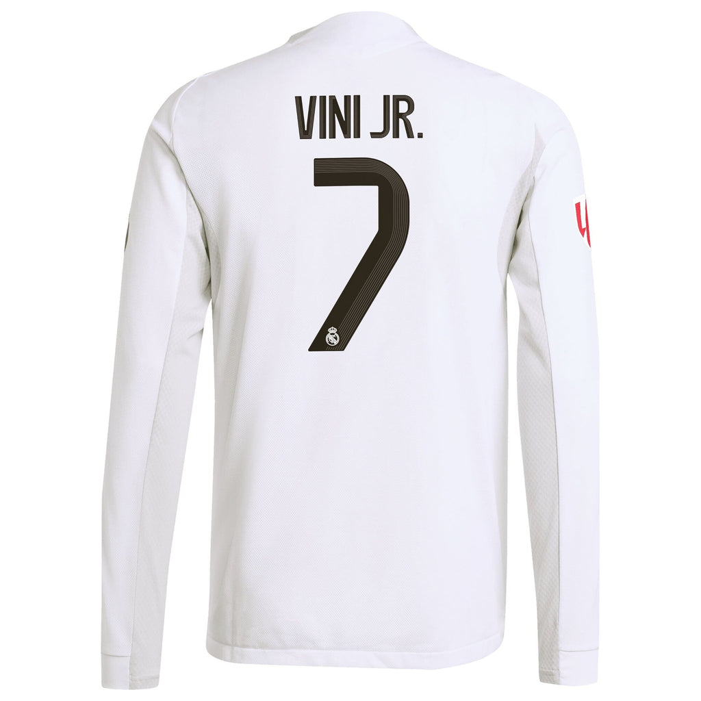 Show your unwavering support for Real Madrid and Vini Jr. with this 2025/26 home Soccer Shirt in white. Engineered with AEROREADY® technology, this Soccer Shirt absorbs moisture to keep you dry and comfortable whether you’re on the pitch or cheering from the stands.